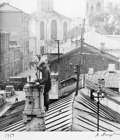 Леонид Лазарев Трубочист 1958 г. Фотобумагаб, серебряно-желатиновая печать. 311Х286. МРФ/МОК ОФ-3928 Ф-4/Лаз
